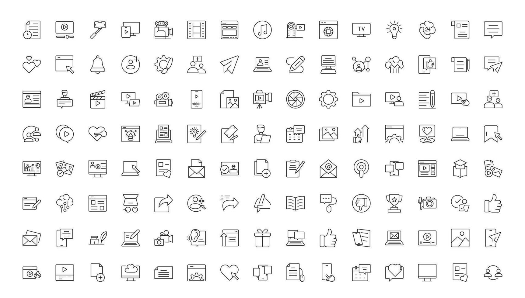 Blogging icons. Post, social media, content, website, sharing, create, opinion. Business concept. Web infographic in outline icon style. Pro Vector