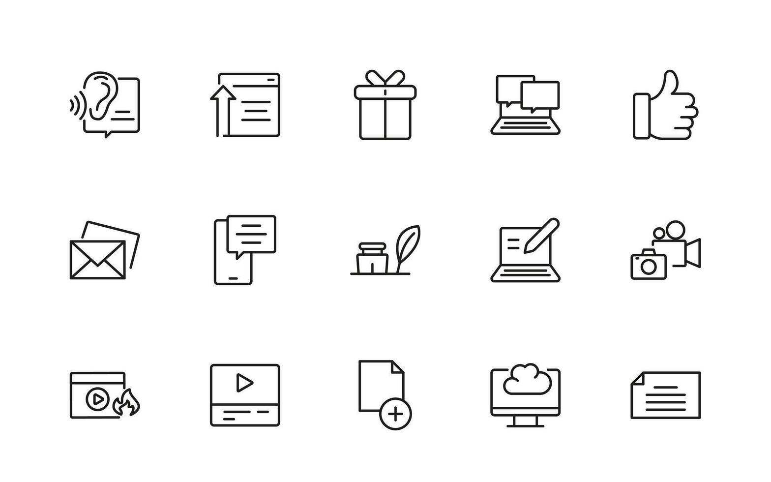 Blogging thin line icon set. Post, social media, community, content, website, sharing, create, opinion. Business concept. infographic in line style icon set. Pro Vector