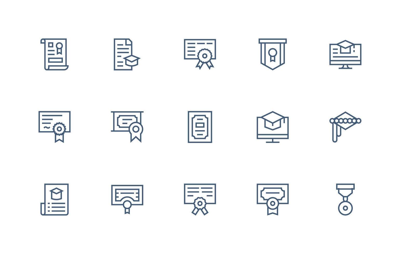 Diploma Design Icons featuring 15 in Regular Line Style Web Icon Collection Free Vector