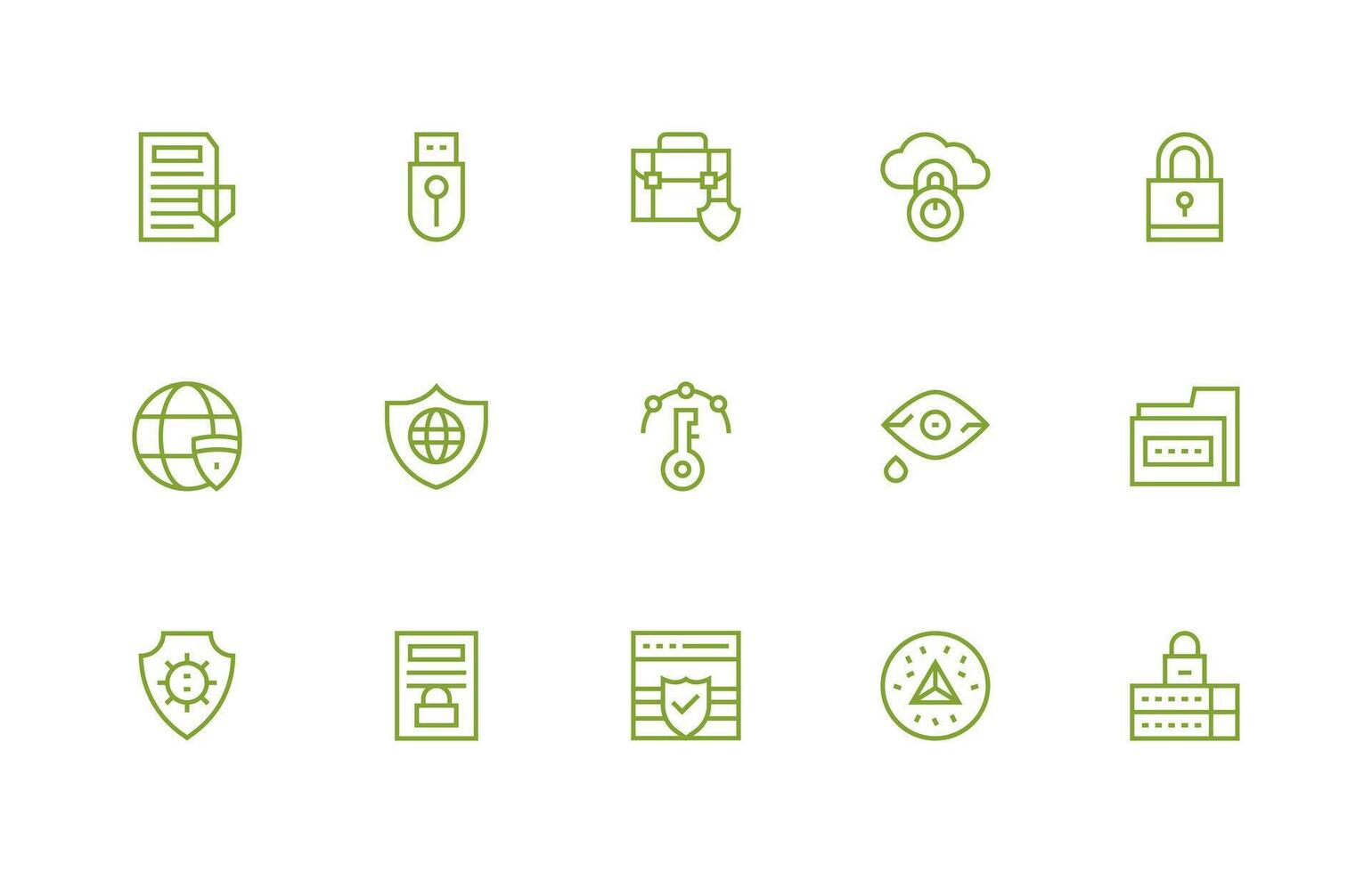 Encryption Design Icons featuring 15 in Regular Line Style Versatile Icon Collection for Designers vector
