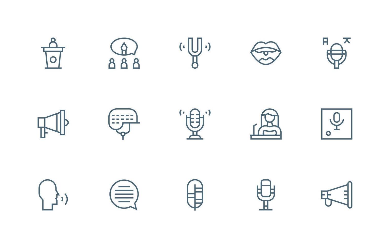 15 Icons for Speech in Regular Line Format Theme-Based Icon Pack vector