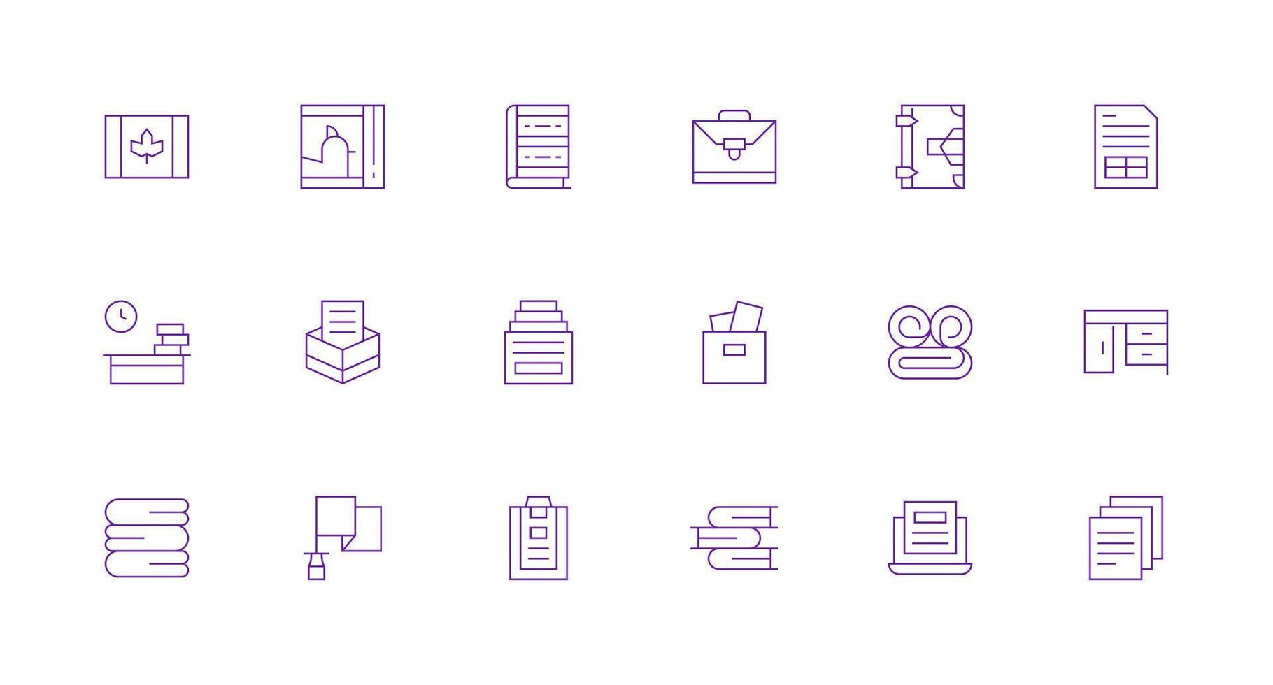 Papers Icon Set with 18 Minimal Line Graphics Functional Icon Series Free Vector