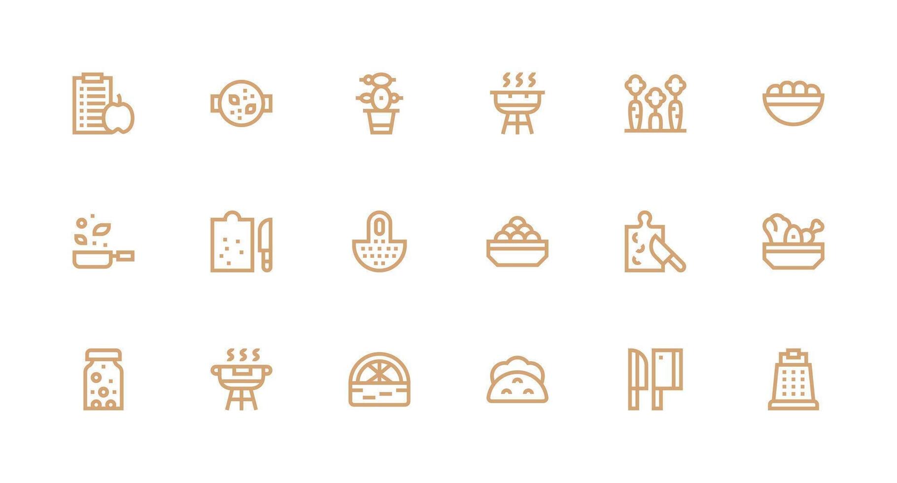 Vegetables including 18 Strong Stroke Line Illustrations Scalable Icons for Cross-Platform Interfaces Free Vector