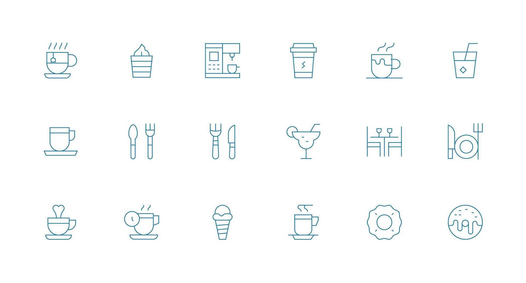 18 Icons for Cafe Icon in Minimal Line Format Scalable Icons for Cross-Platform Interfaces vector