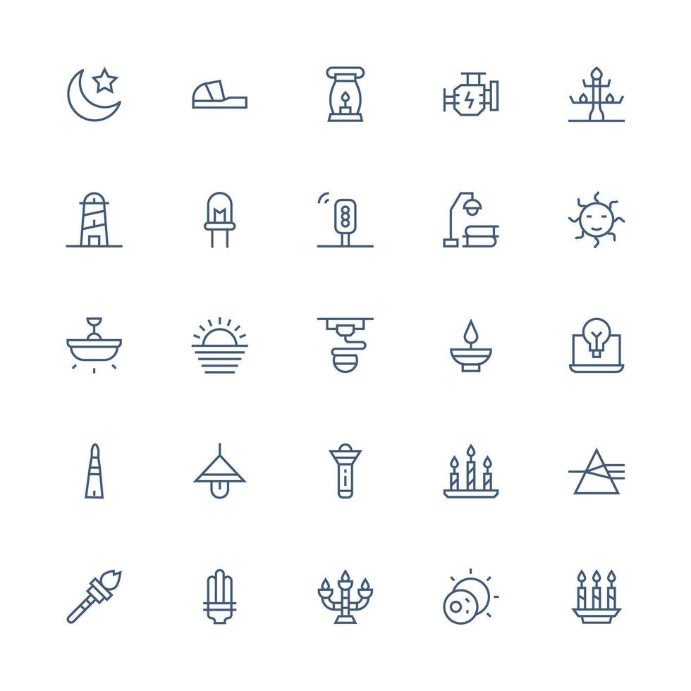 Light Design Icons featuring 25 in Medium Stroke Outline Style Fully Editable Icon Set for Web Free Vector