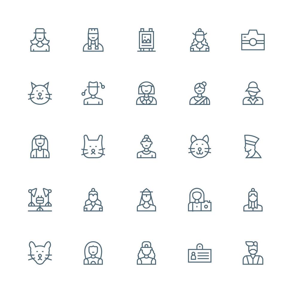 Portrait Set with 25 Medium Stroke Outline Icons UI and UX Focused Icon Collection vector