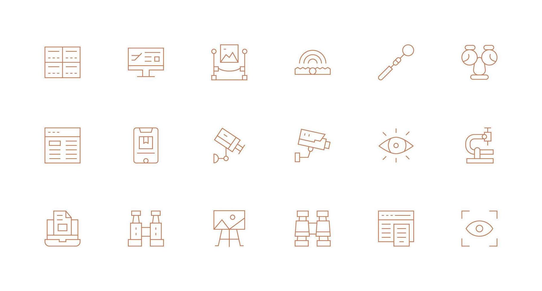 View Icon Set with 18 Minimal Line Graphics Detailed Icon Collection for Design Systems Free Vector