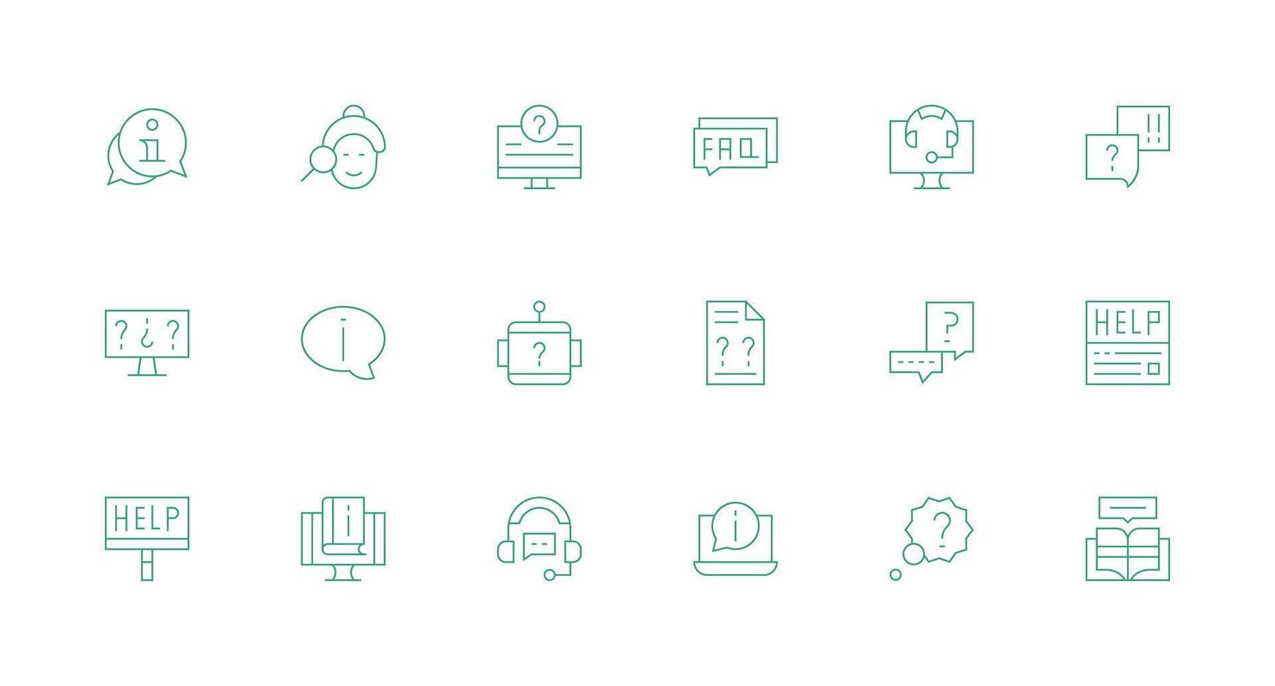 Faq Design Icons featuring 18 in Minimal Line Style Interface Icons for Daily Use vector