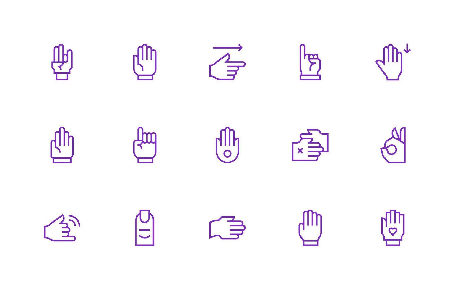 Gesture Icon Set with 15 Regular Line Graphics All Device Compatible Icon Set vector
