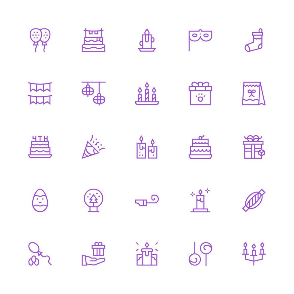 Festive Icon Set with 25 Medium Stroke Outline Graphics Interface Icon Collection for Daily Projects Free Vector