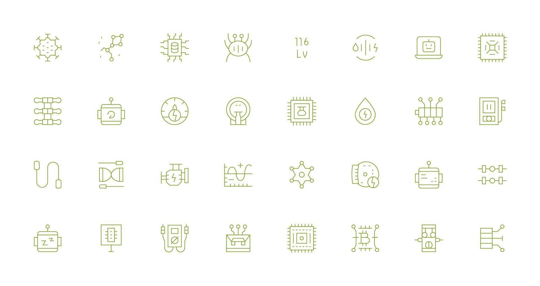 Circuit including 32 Thin Line Illustrations Interface Icon Collection for Daily Projects Free Vector
