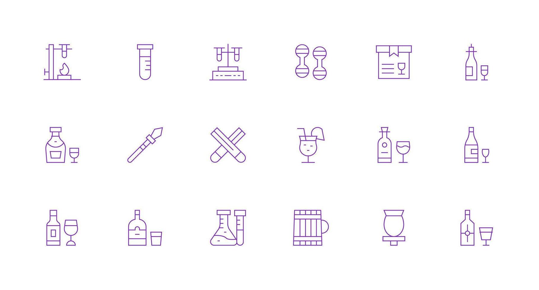 Glassware Design Icons featuring 18 in Minimal Line Style Well-Structured Icons for Creative Use vector