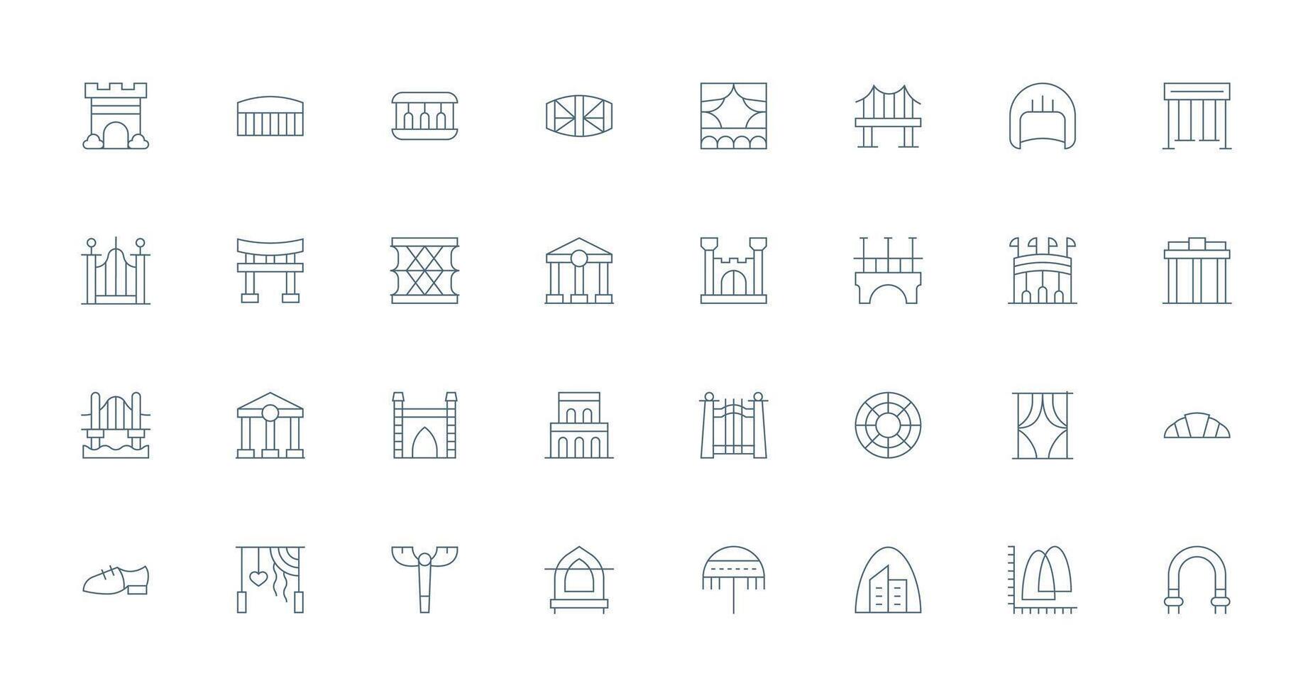 32 Icons for Arch in Thin Line Format Fully Editable Icon Set for Web vector