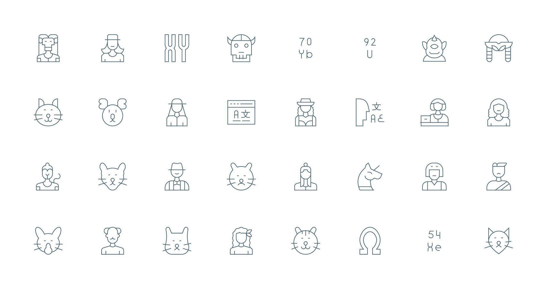 Thin Line Icons from Character Set with 32 Vectors Sharp Icons for Presentations Free Vector