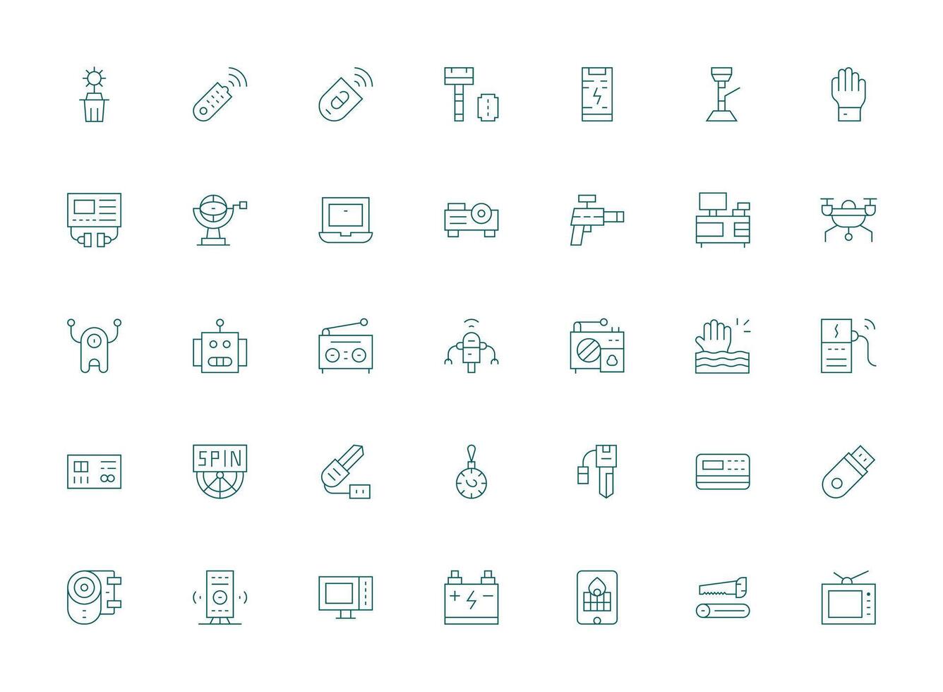 Gadget Design Icons featuring 35 in Light Line Style Minimal Icon Set for Interface Projects vector