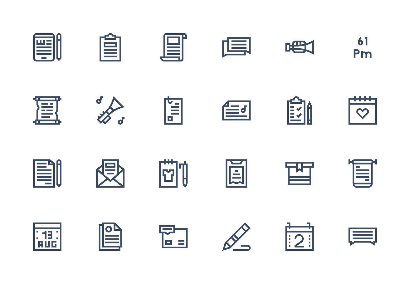 Note including 24 Thick Line Line Illustrations Balanced Icon Set for Functional Design Free Vector