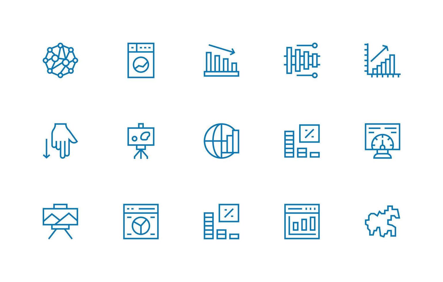 Regular Line Style Graph Icons with 15 Vectors Pixel Perfect Icons for Modern Apps