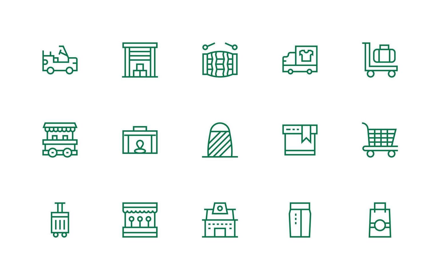 Goods Design Icons featuring 15 in Regular Line Style Balanced Icon Set for Functional Design vector