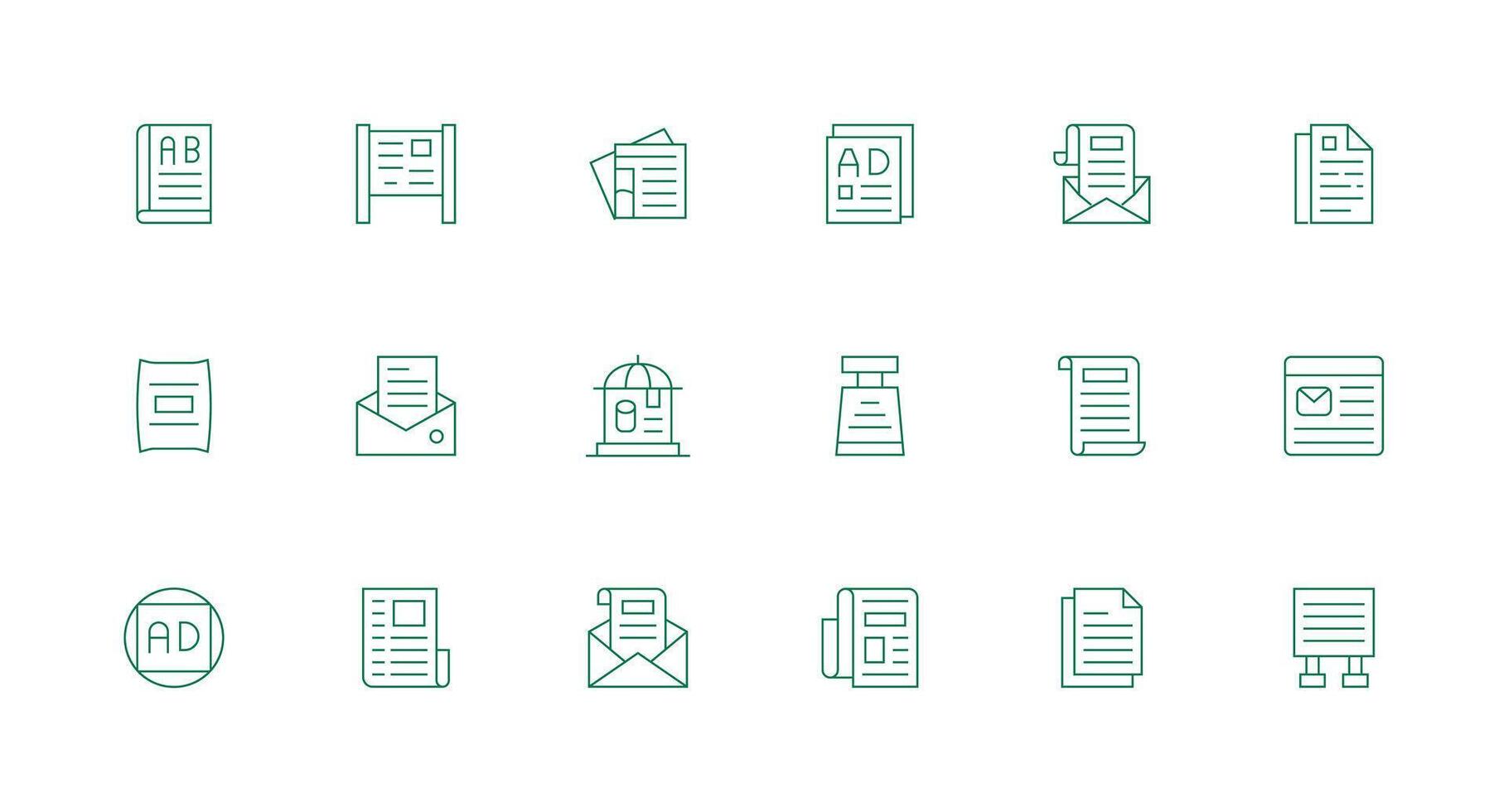 Bulletin Design Icons featuring 18 in Minimal Line Style Scalable Icons for Cross-Platform Interfaces vector