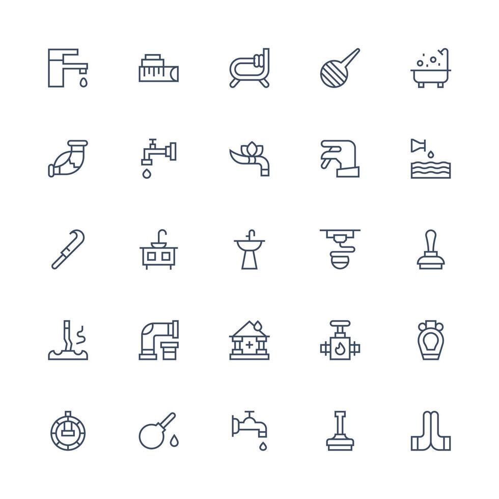 25 Medium Stroke Outline Icons for Plumbing Graphics Flexible Icon System for Web Interfaces vector