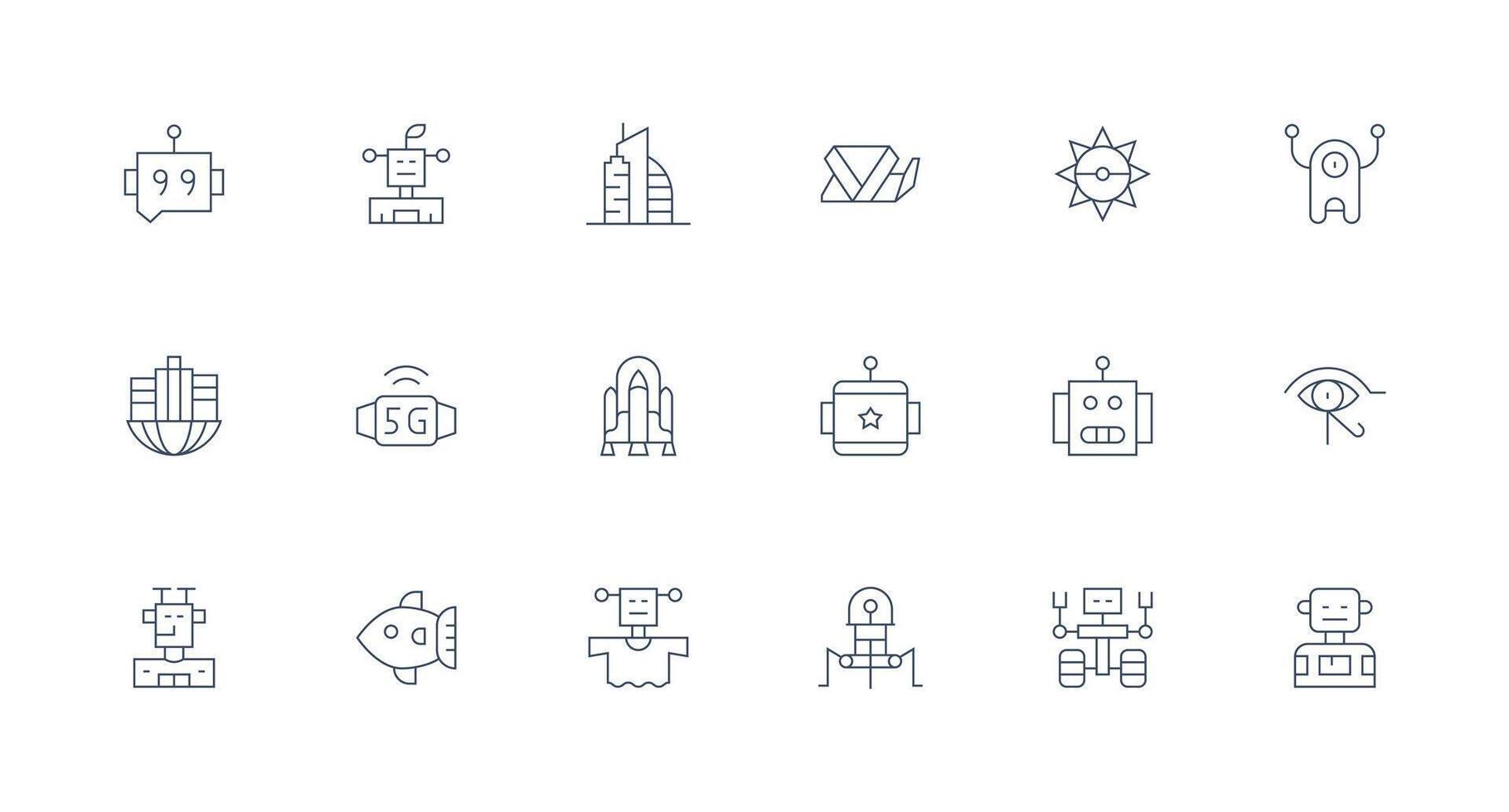 Minimal Line Icons from Futuristic Set with 18 Vectors Quick Access Icons for UI Development Free Vector