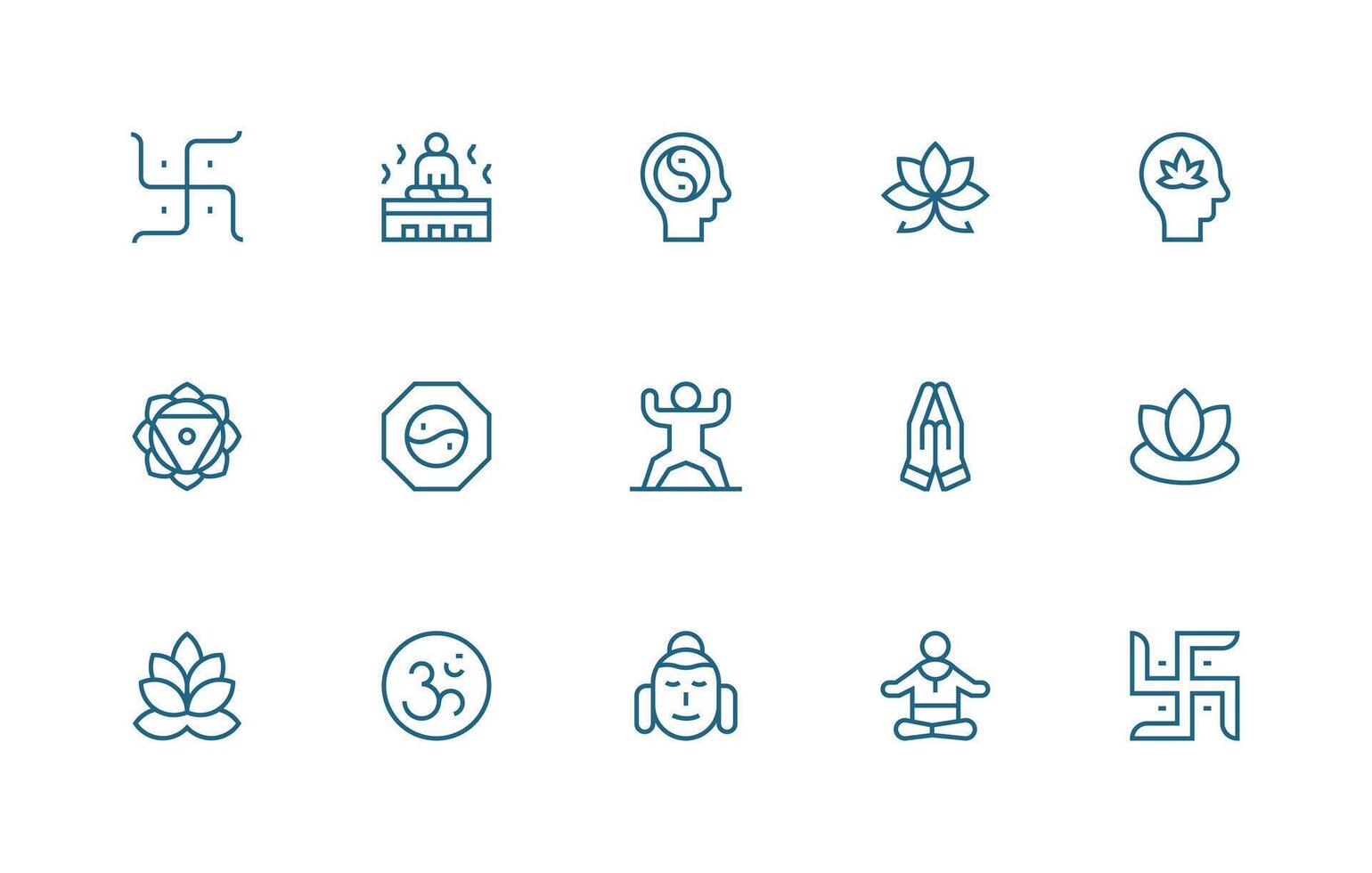 Meditation Design Icons featuring 15 in Regular Line Style Reliable Icons for All Interfaces Free Vector