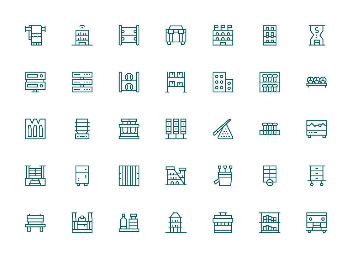 Regular Clean Line Icons from Rack Set with 35 Vectors Organized Icon Pack for Quick Access Free Vector
