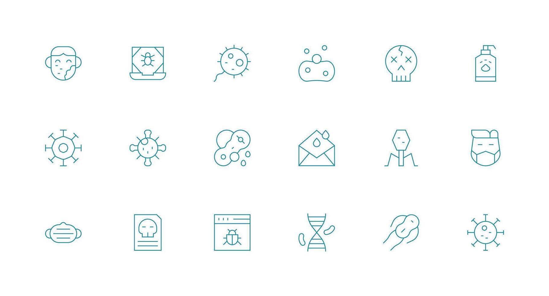 Minimal Line Style Virus Icons with 18 Vectors Layout Icon Collection Free Vector