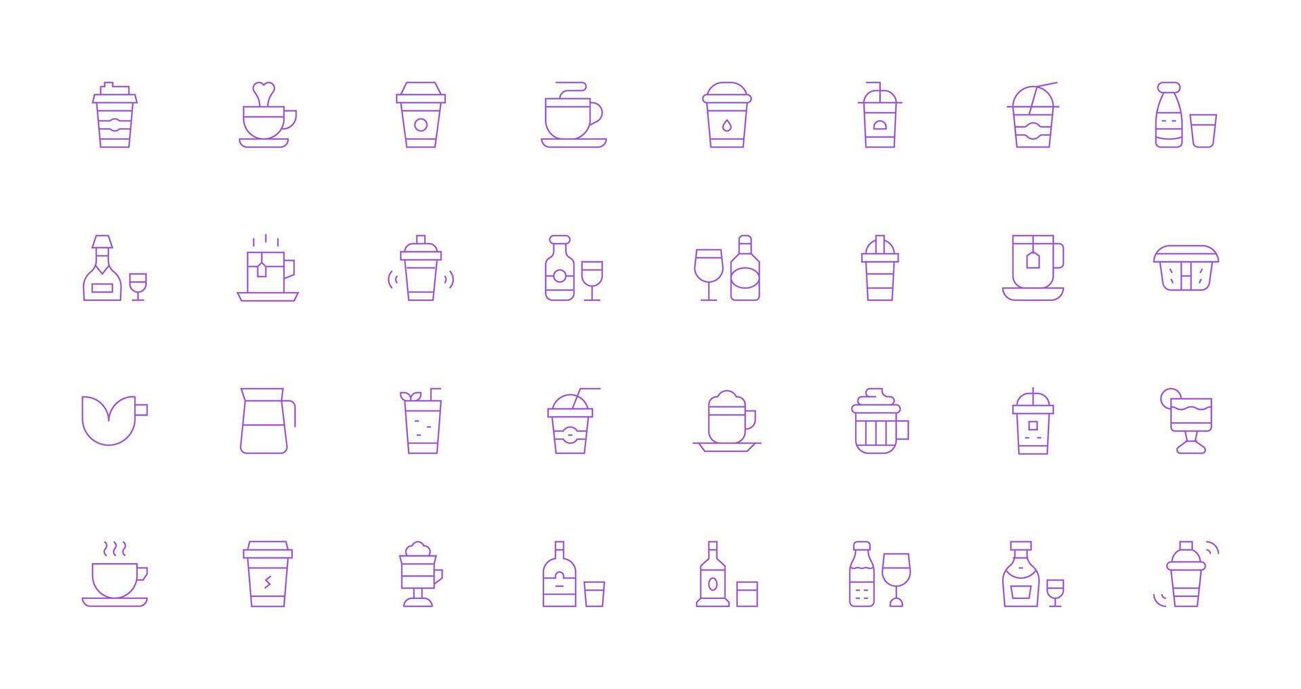 Drinkware Icon Set with 32 Thin Line Graphics Style Icon Set Free Vector