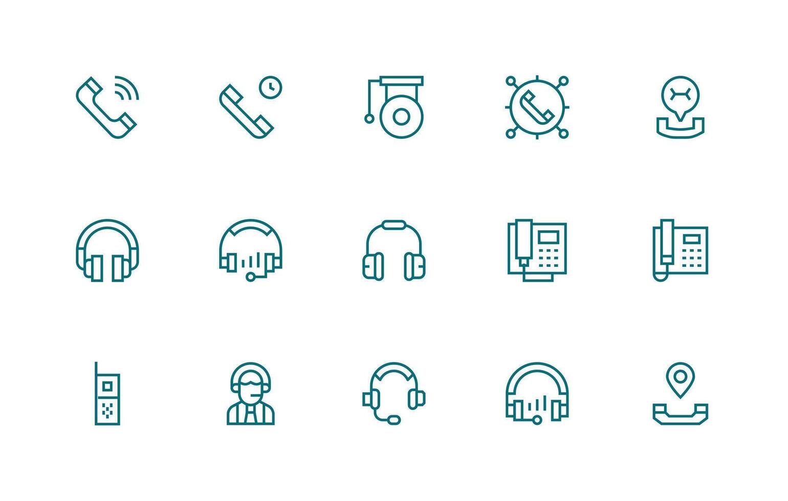 Call Icon Set with 15 Regular Line Graphics Multi-Purpose Icon Pack for Templates Free Vector