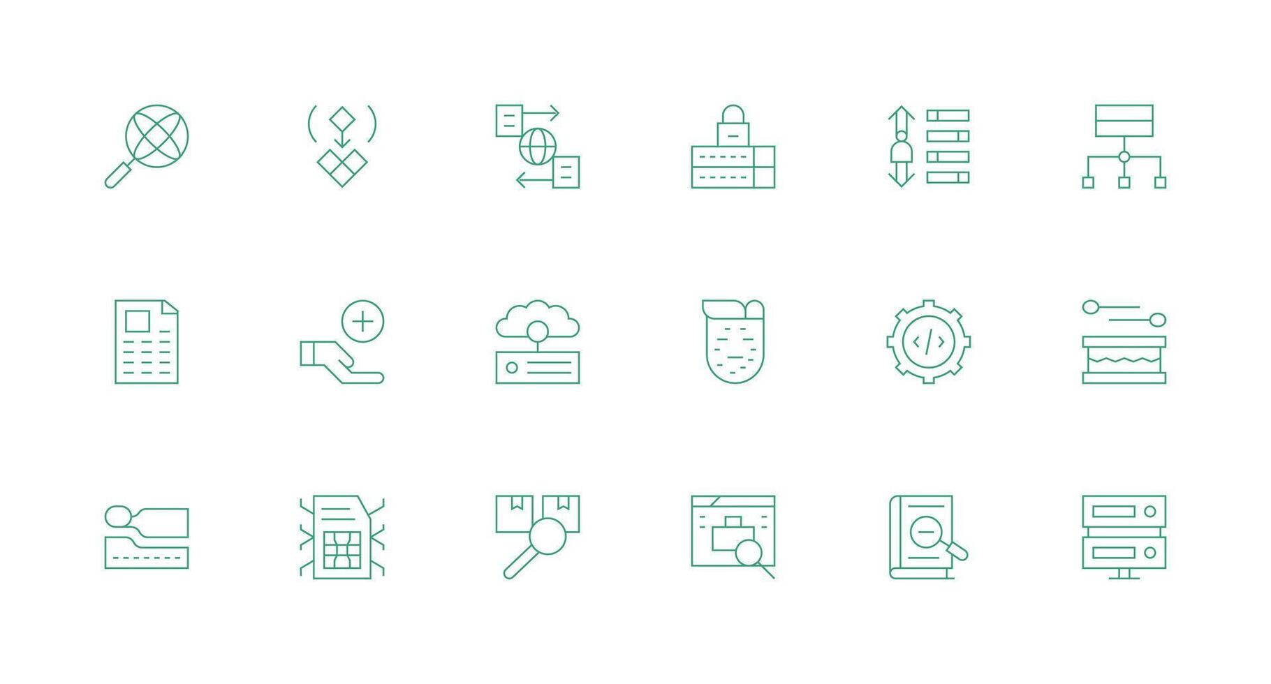 Database Icon Set with 18 Minimal Line Graphics Organized Glyph Icons for Fast Design Free Vector