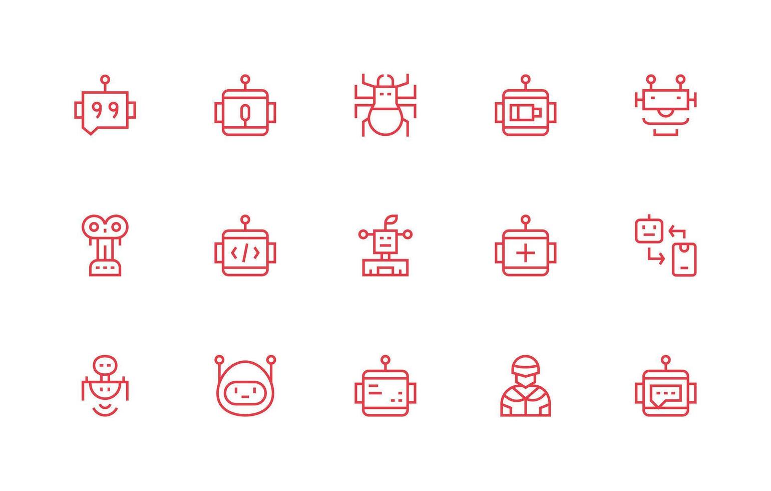 15 Regular Line Style Icons from Robot Collection Pixel Perfect Icons for Modern Apps vector