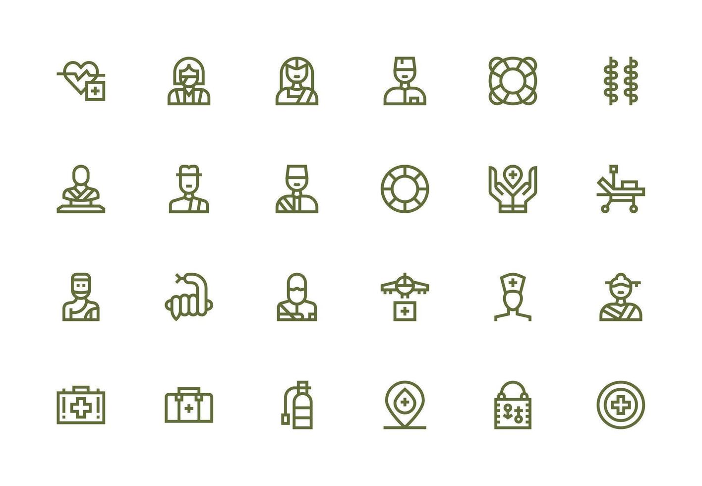 First Aid Icon Set with 24 Thick Line Line Graphics Complete Icon Bundle for Web Design Free Vector