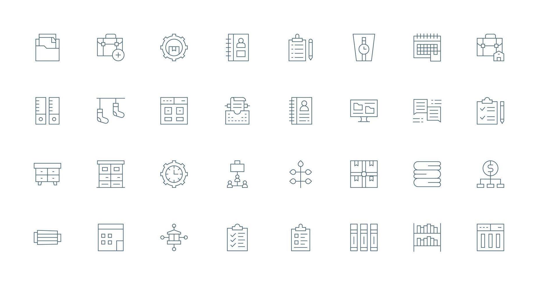 Organization Icon Set with 32 Thin Line Graphics Clear and Concise Icon Set Collection Free Vector