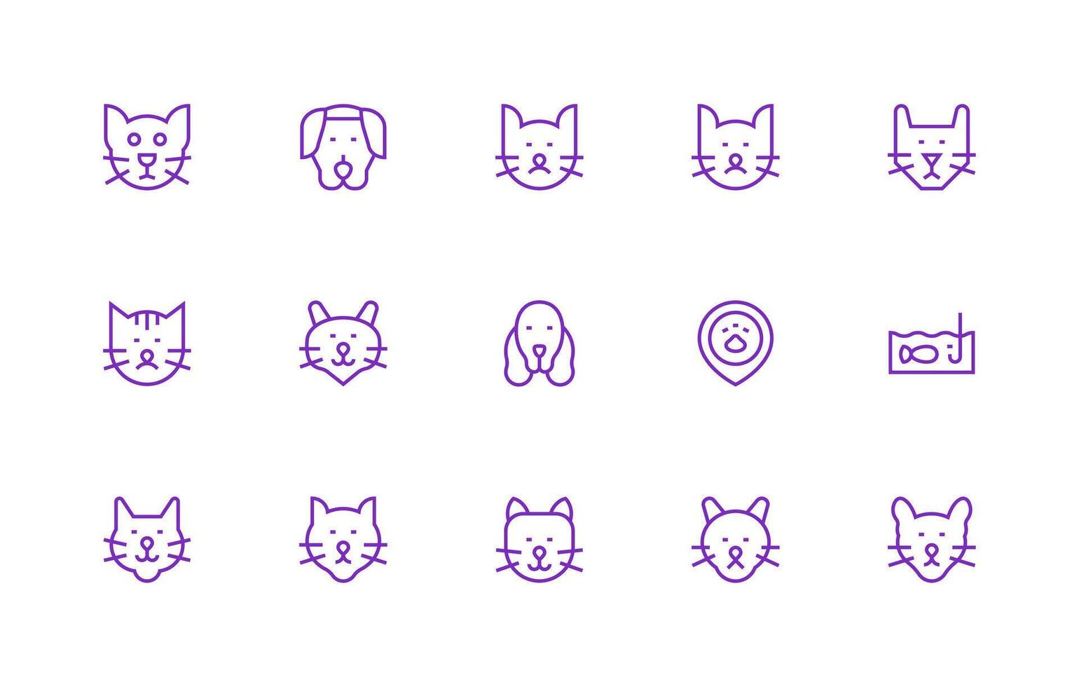 Pet Icon Set with 15 Regular Line Graphics Icon Set for Projects Free Vector