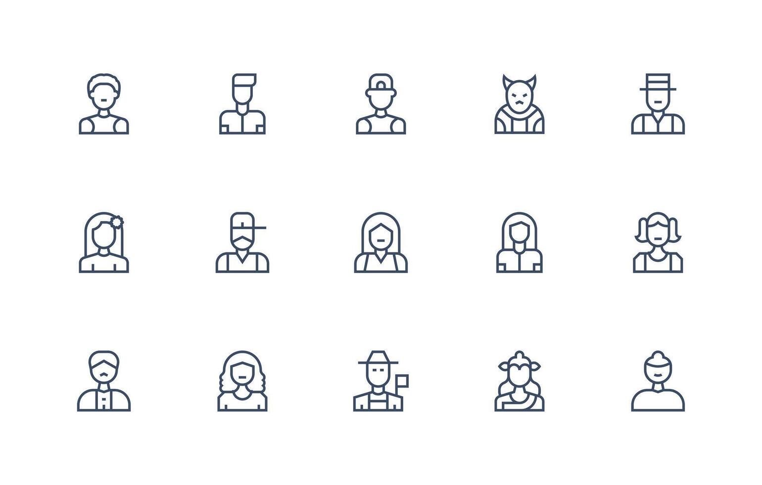 15 Icons for Avatar in Regular Line Format Multi-Style Icons for Creative Projects vector