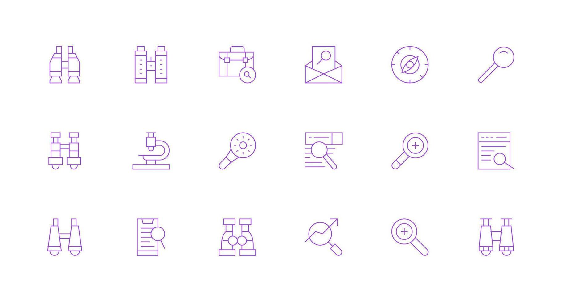 Magnifying Icon Collection with 18 Minimal Line Designs Clean Icon Collection for Web Use Free Vector