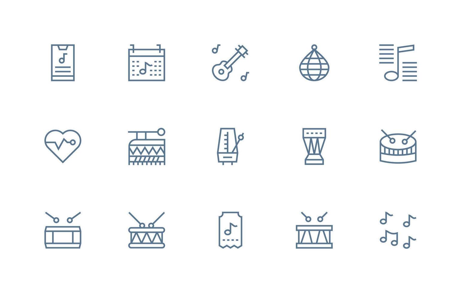 Rhythm Icon Set with 15 Regular Line Graphics Customizable Icon Series for Mobile Screens vector