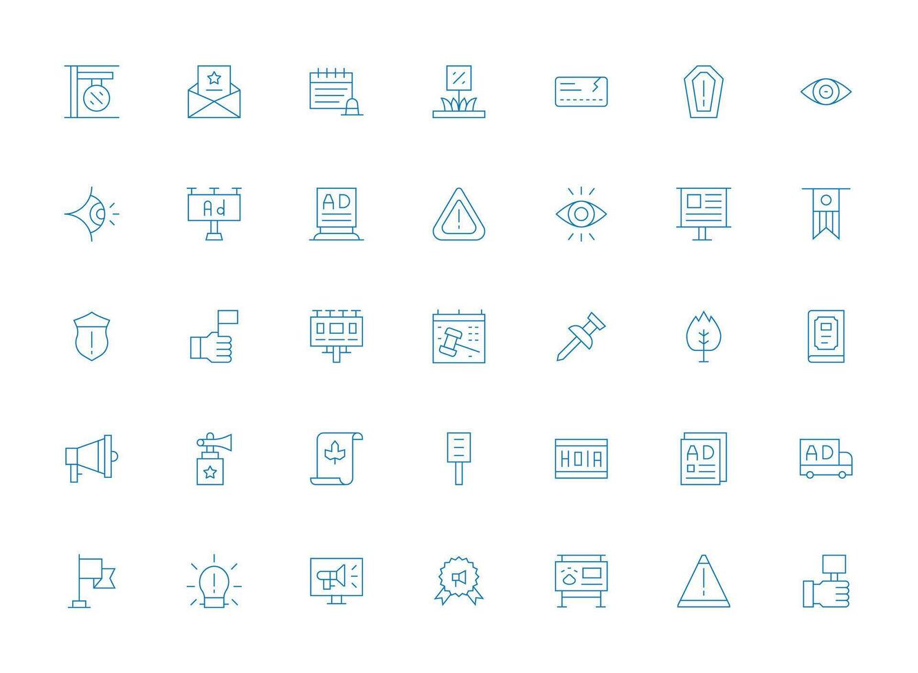 35 Light Line Style Icons from Notice Collection Flexible Icon System for Web Interfaces Free Vector