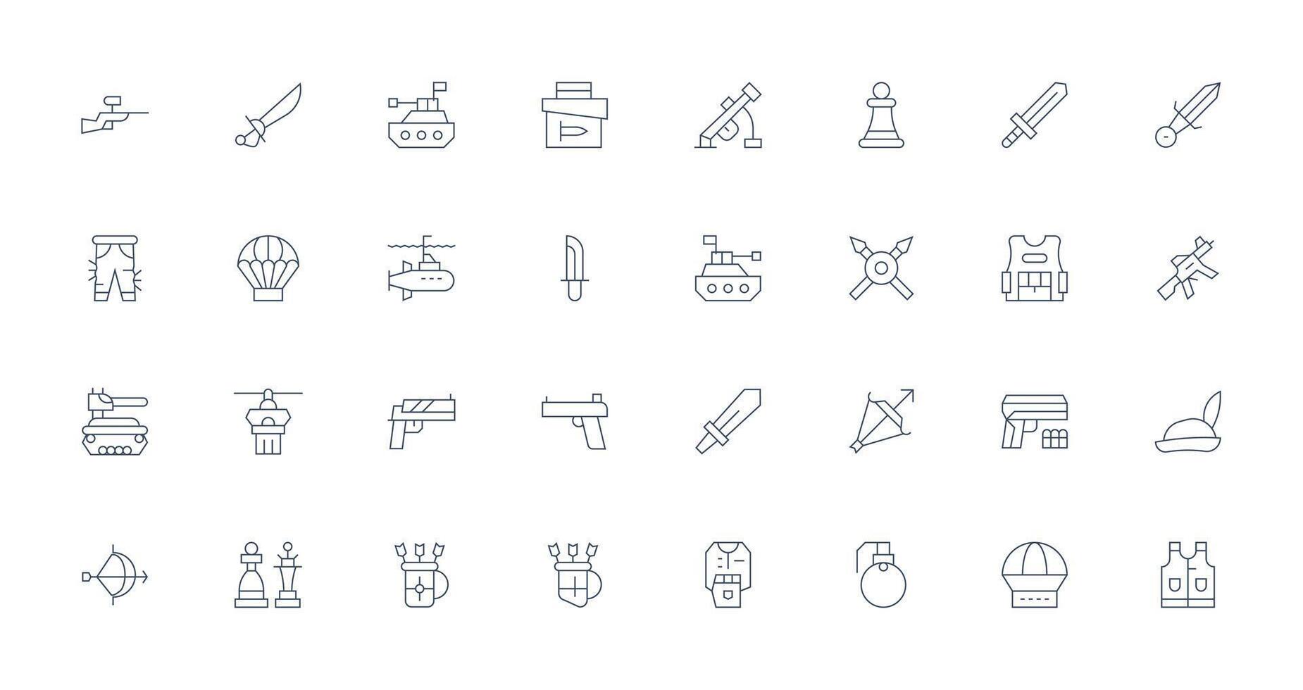 Tactical Set with 32 Thin Line Icons Icon Set for Projects Free Vector