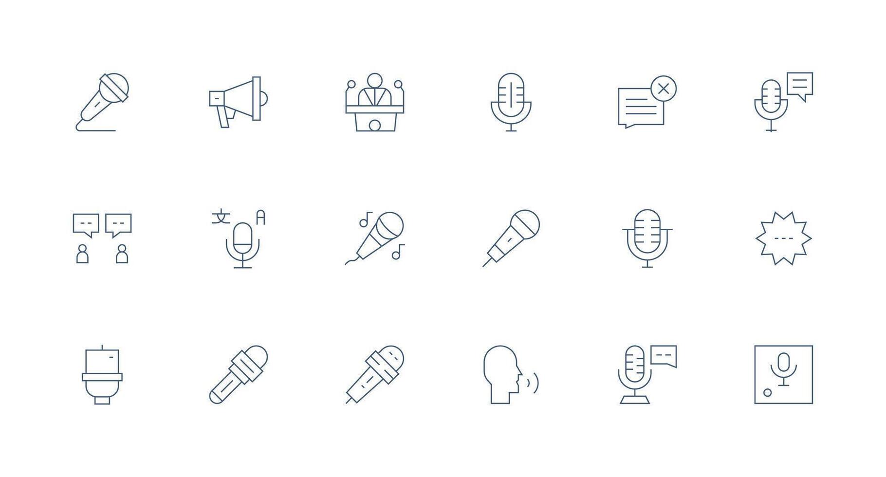 Commentary Icon Set with 18 Minimal Line Graphics Light Icon Series Free Vector