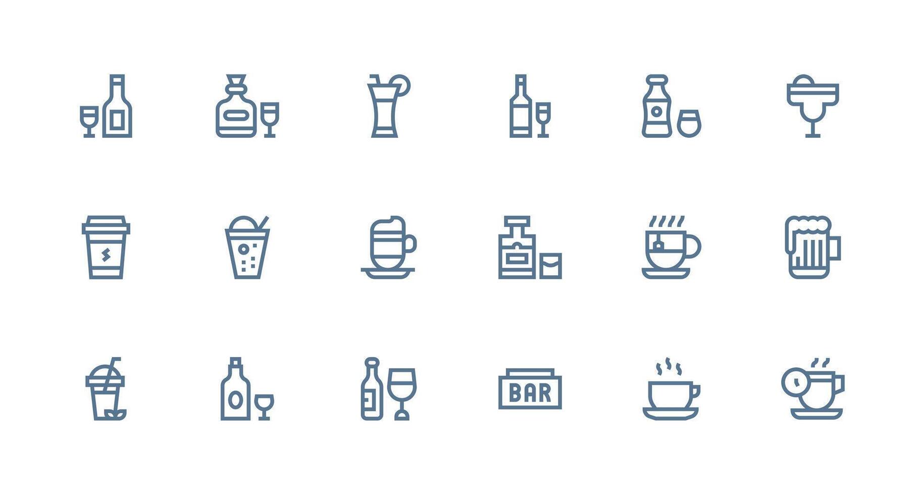 Drink Icon Set with 18 Strong Stroke Line Icons High-Resolution Icons for Any Platform Free Vector