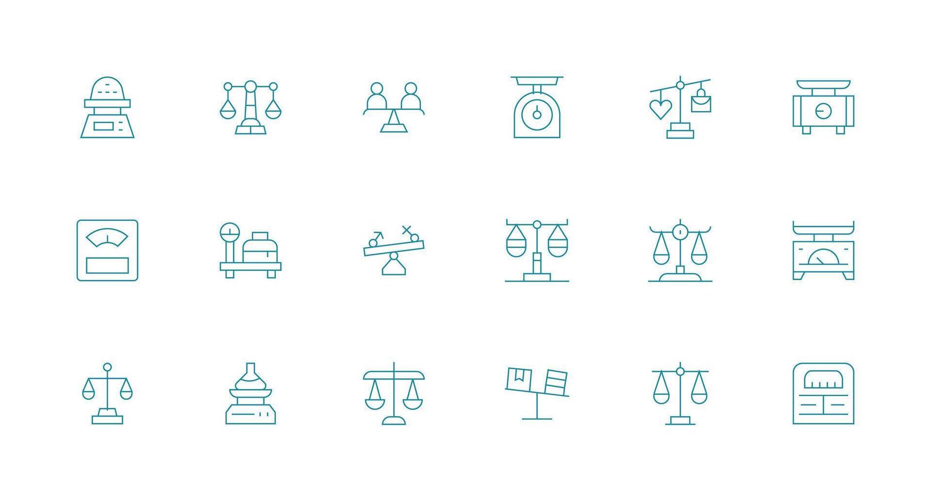 Weighing Icon Set with 18 Minimal Line Graphics Design Ready Icon Set for Teams vector