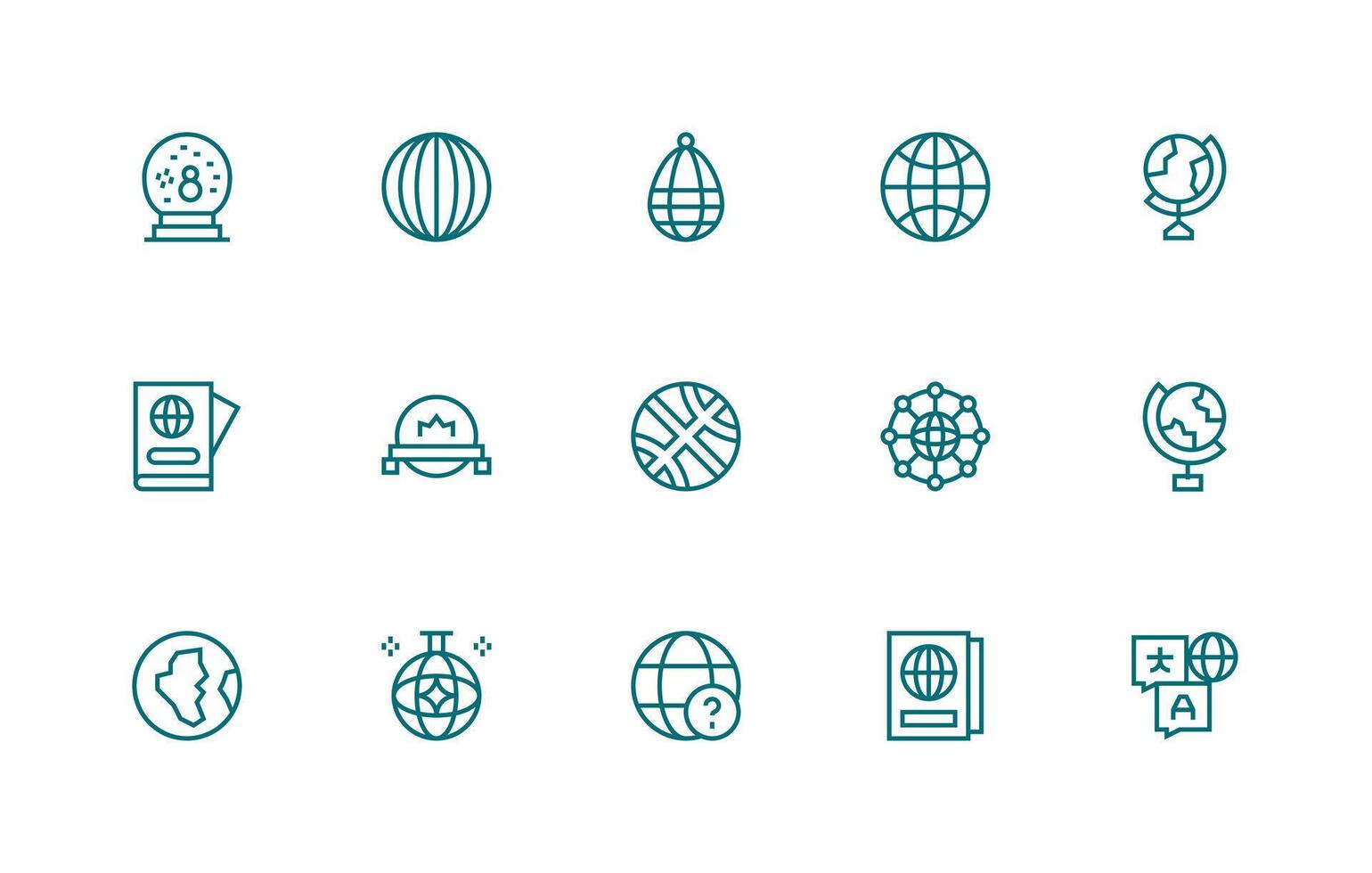 Globe featuring 15 Icons in Regular Line Design Fully Editable Icon Set for Web vector