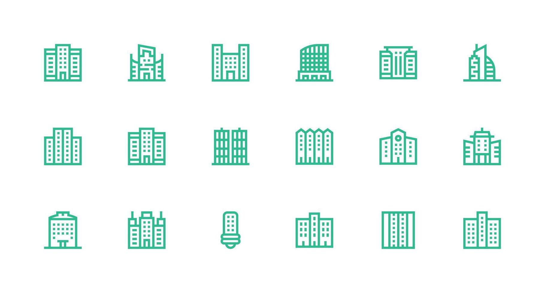 Apartments Design Icons featuring 18 in Strong Stroke Line Style Simple Icons for Interface and Wireframes vector
