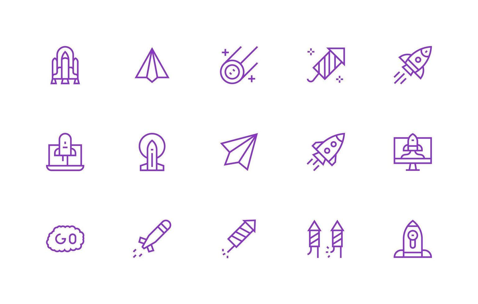 Launch Icon Collection with 15 Regular Line Designs UI Icon Set Free Vector