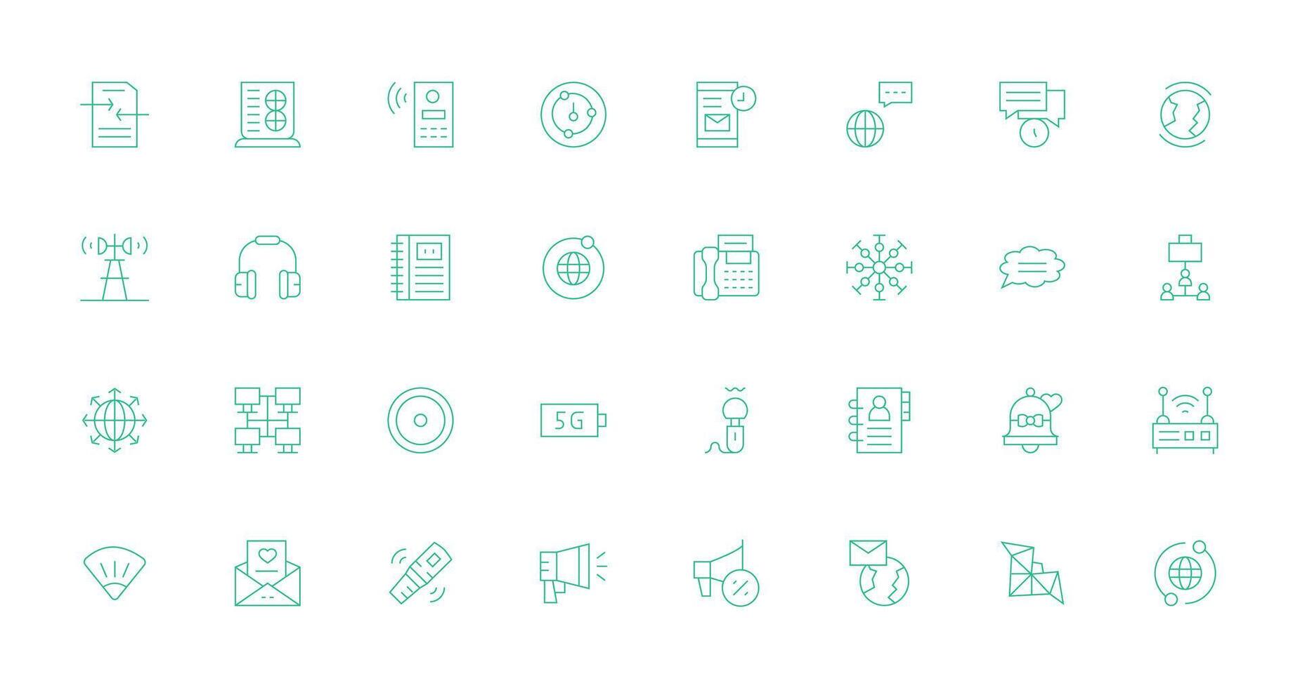 32 Communication Icons in Thin Line Aesthetic Scalable Icons for Cross-Platform Interfaces vector