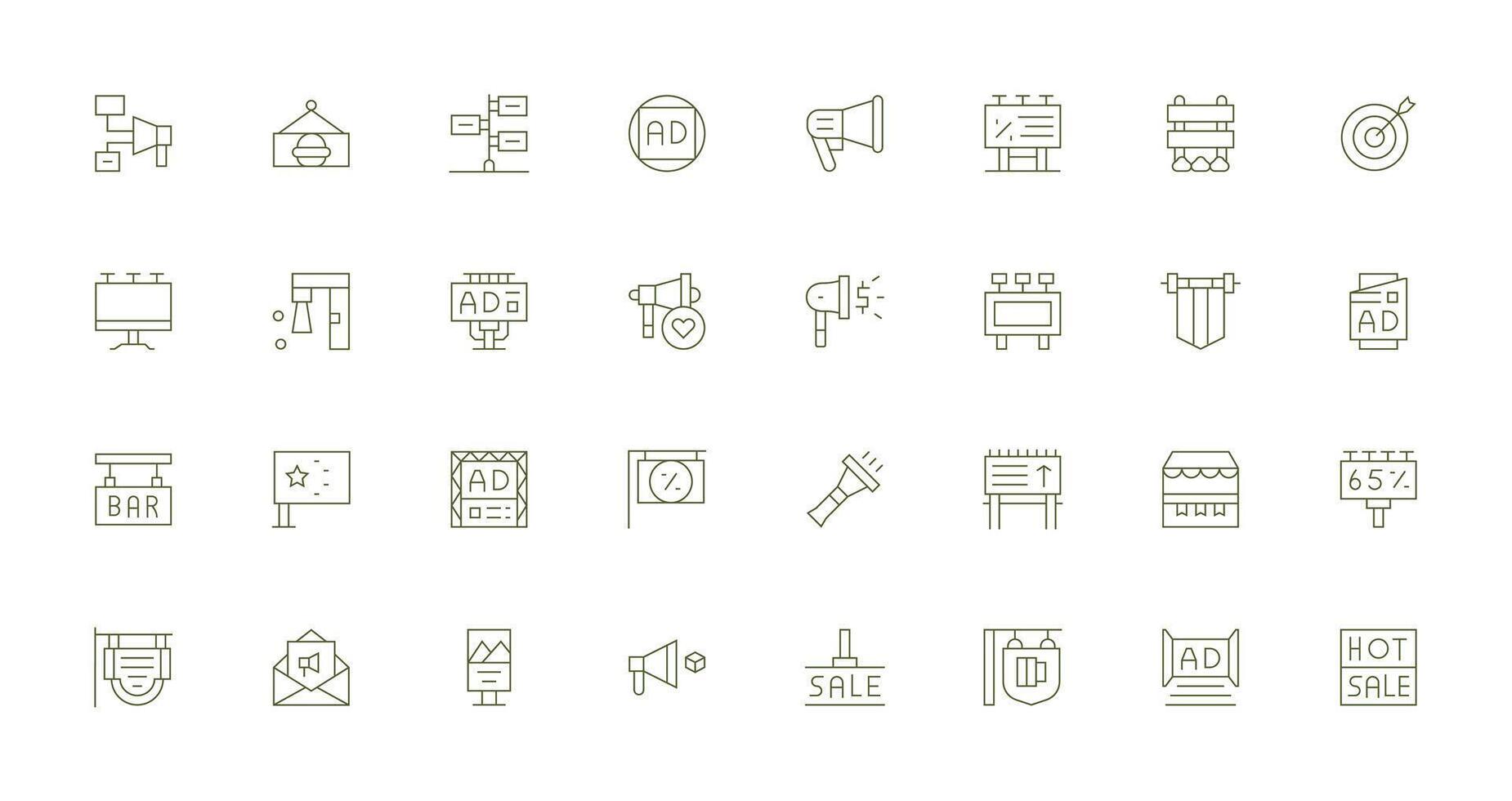 Advertising Set with 32 Thin Line Icons Neatly Designed Icons for Web Platforms Free Vector