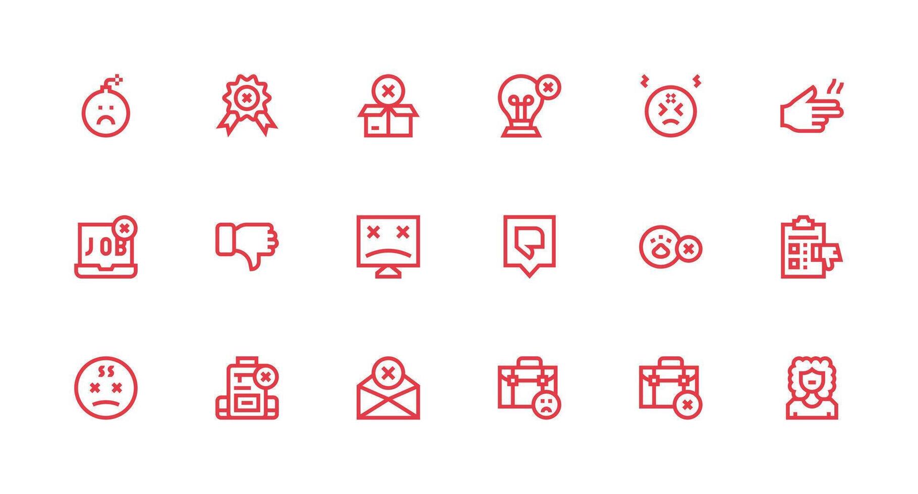 Unsuccessful Visual Pack containing 18 Strong Stroke Line Icons Quick Access Icons for UI Development vector