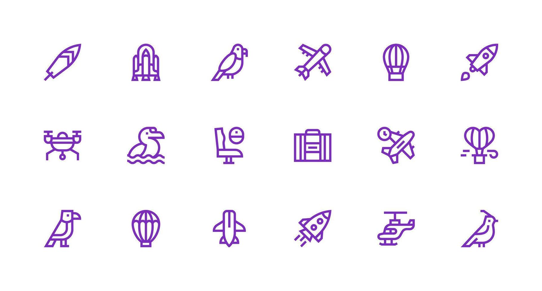 Flight Design Icons featuring 18 in Strong Stroke Line Style Icon Set for Web Free Vector